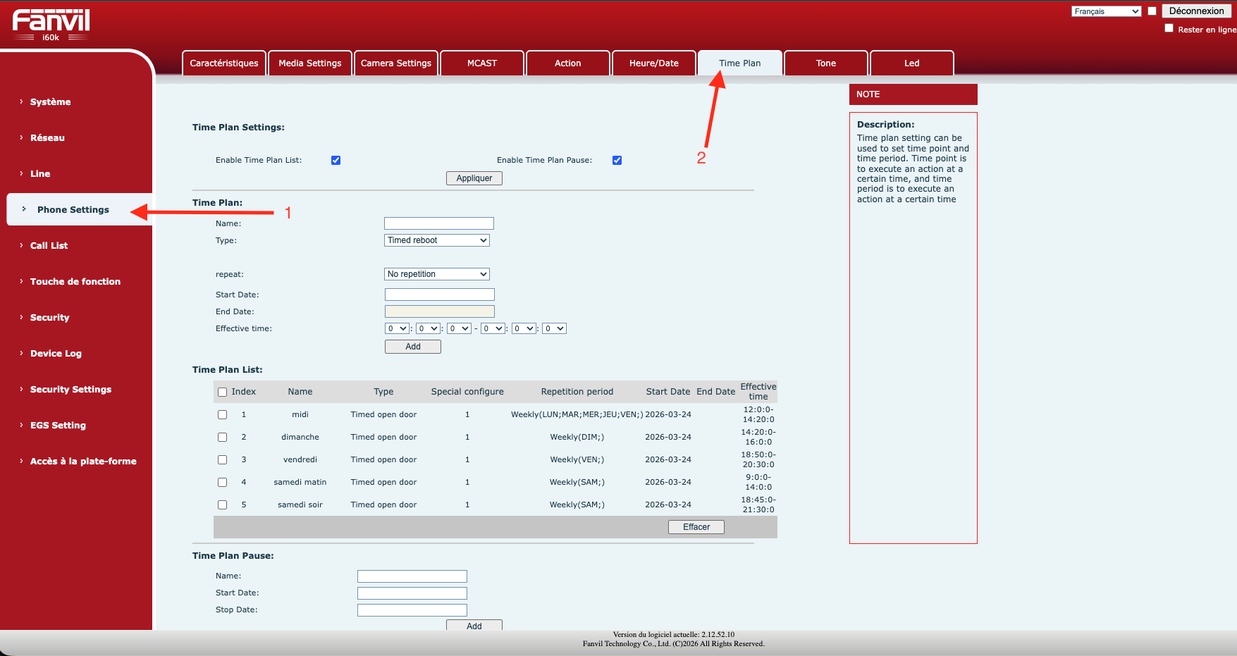 Une fois la règle ajoutée, vérifiez qu’elle apparaît bien dans la section Time Plan List en bas de la page.